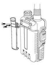 -Não use nenhum tipo de cola para fixar o parafuso no clipe para cinto. A cola solvente pode danificar o invólucro da bateria.