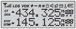 • Transceptor dual band portátil com menu de exibição da função na tela “LCD”.