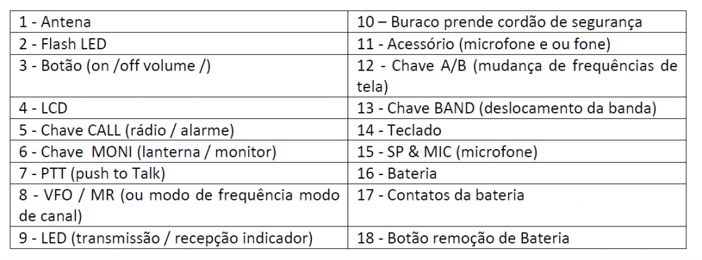 -Se você usar uma antena externa, certifique-se que o “SWR” é cerca 1.5:1 ou menos, para evitar danos aos seu transceptor.