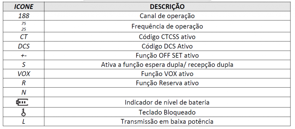 Em alguns casos são desejável para estabelecer comunicações de fechado apenas os usuários e em certa frequência ou canal para Este utiliza os códigos de “CTCSS” ou “DCS”. O “SQUELCH” só abre quando uma frequência codificada “CTCSS” ou “DCS” o mesmo que foram programados no dispositivo emissor. Se os códigos de sinal recebido diferente da programada para o transceptor, o “silenciador” não abre e, portanto, o sinal não é ouvido.